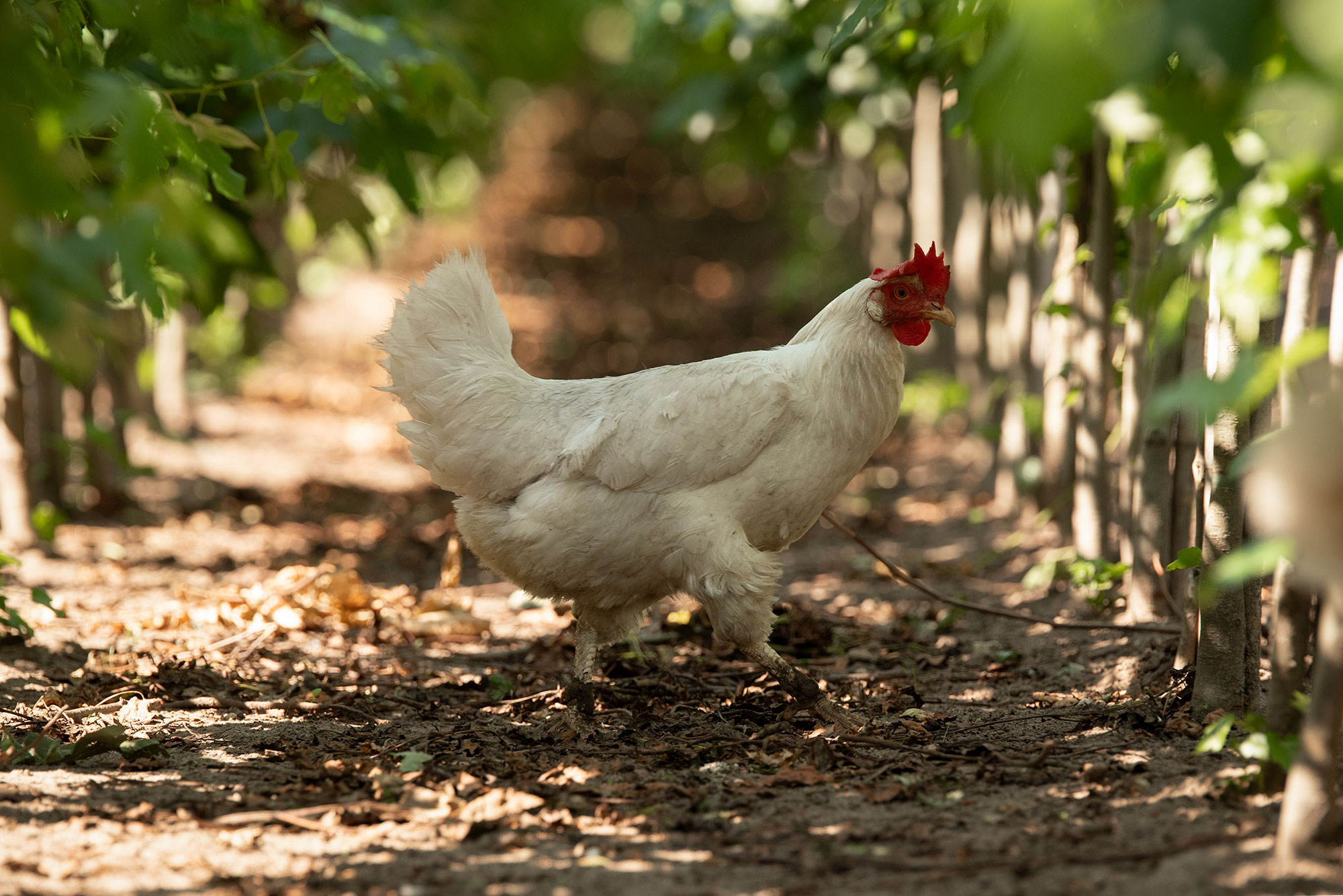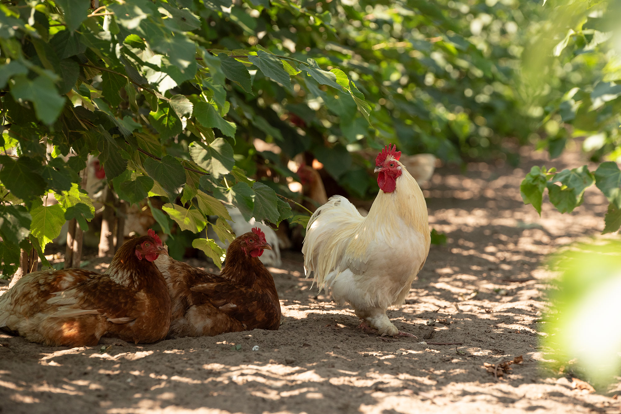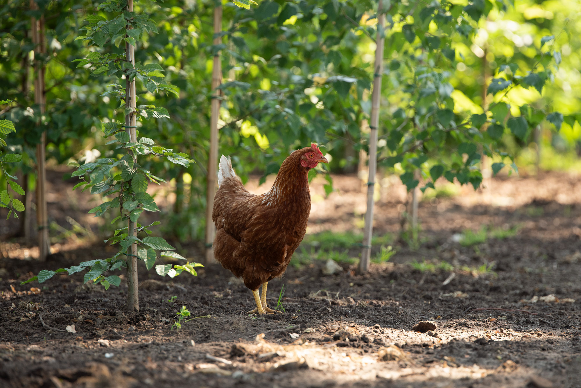 Op onze kwekerij maken we gebruik van kippen, om de kwekerij vrij te houden van onder andere onkruid. Daarnaast eten de kippen ook de beestjes die we liever niet in de bomen zien. Verder hebben ze de vrijheid om hun natuurlijk gedrag te kunnen vertonen. De eieren die worden gelegd door de kippen zijn te vinden in een lokale boerderijwinkel.